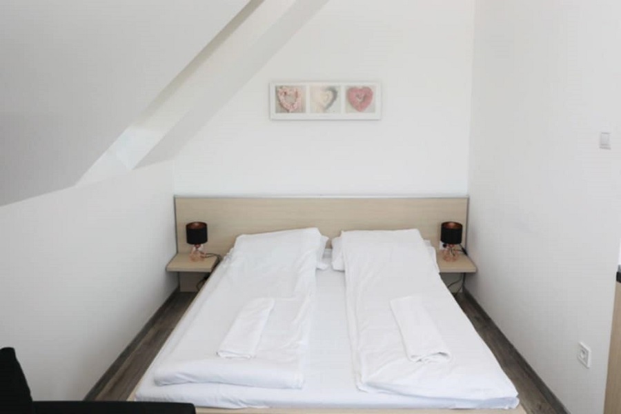 Maga a lakás csendes társasházban található, a fürdőhöz közel eső részen, frekventált helyen.